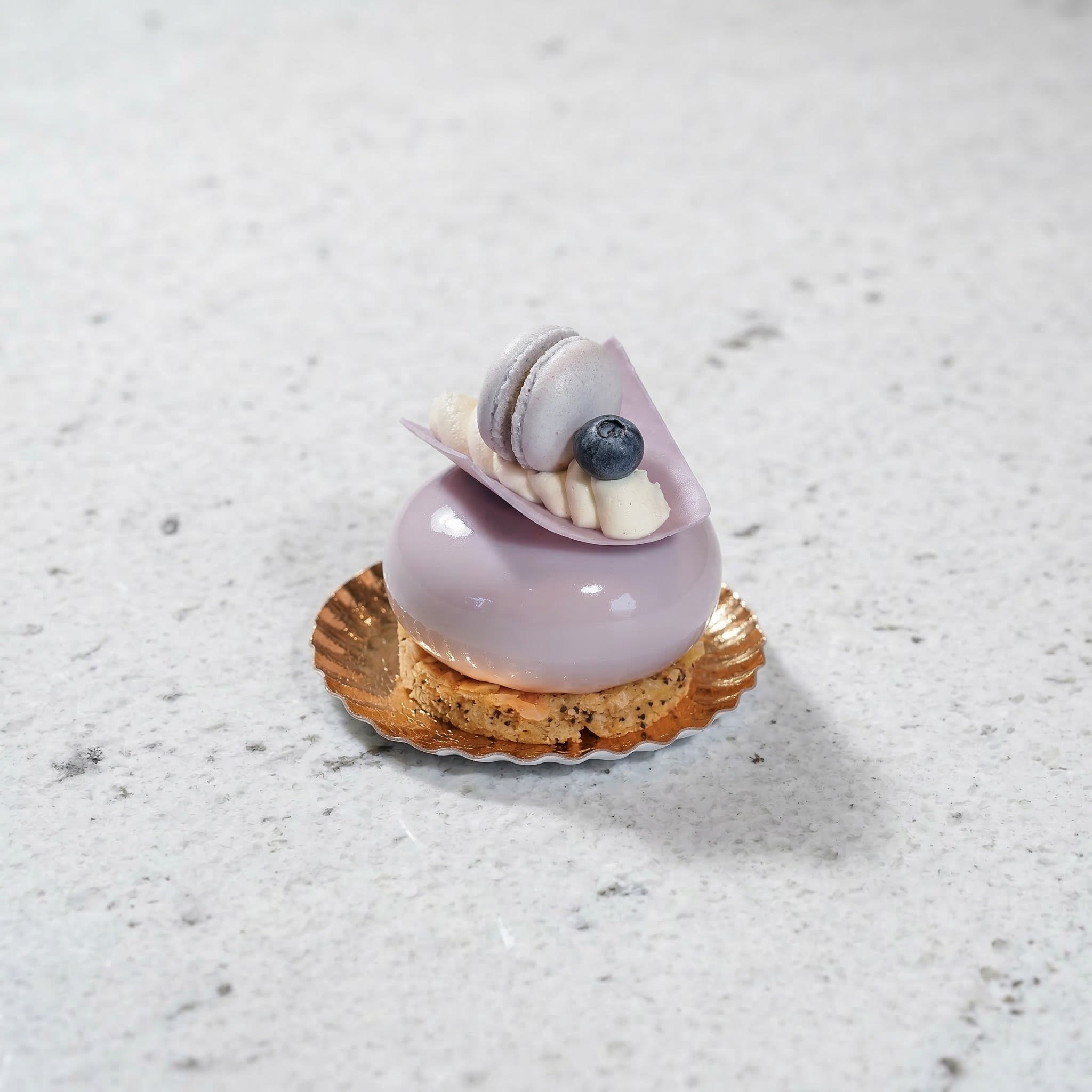 Blåbär, vallmo, mandel, citron, smör, vit choklad, vanilj, socker, mascarpone, grädde, ägg, kondenserad mjölk, gelatin, agar agar.