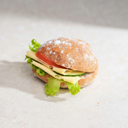 Klassisk frukostfralla med ost och fräscha grönsaker.