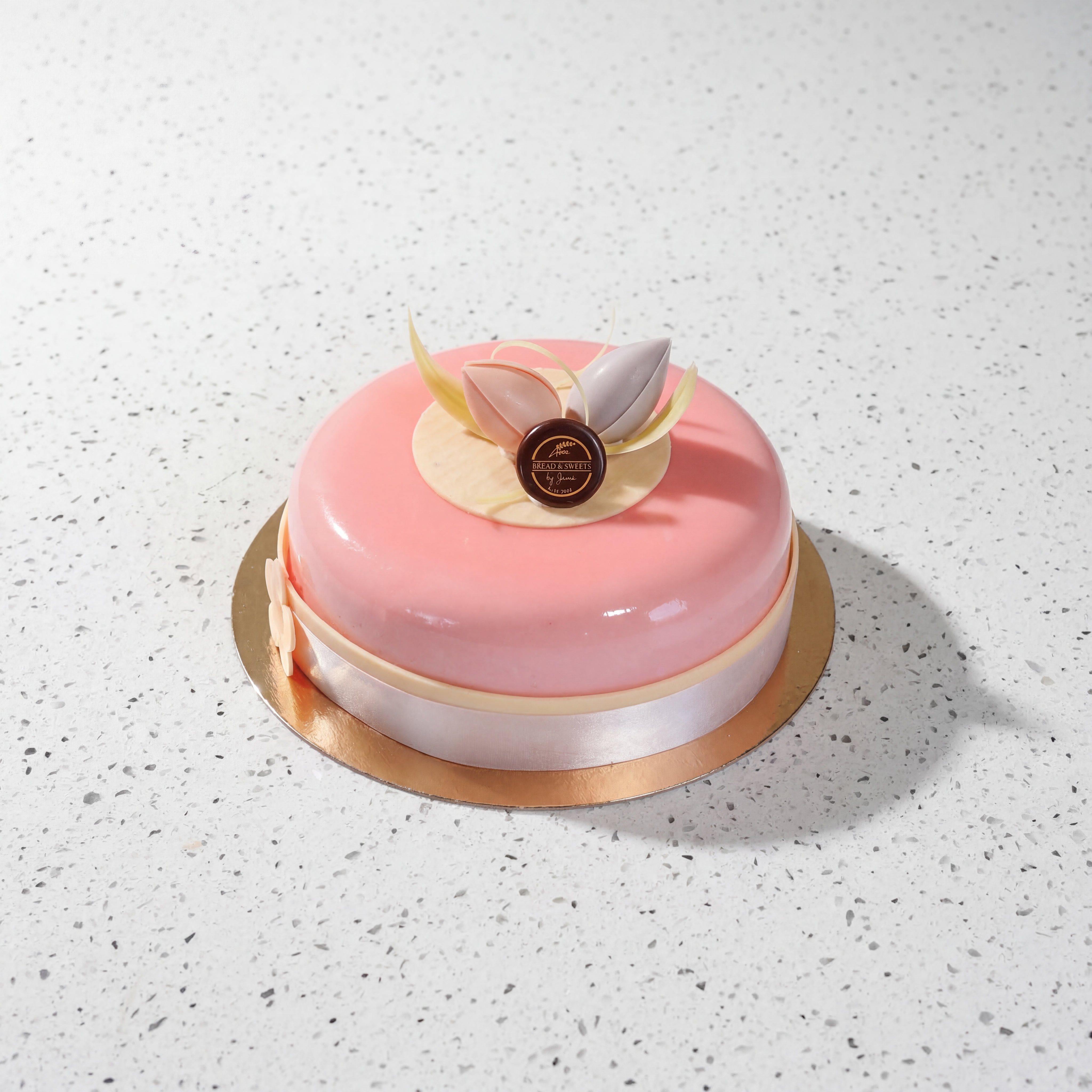 Frisk hallon- och pistagetårta med krämig vit choklad.
