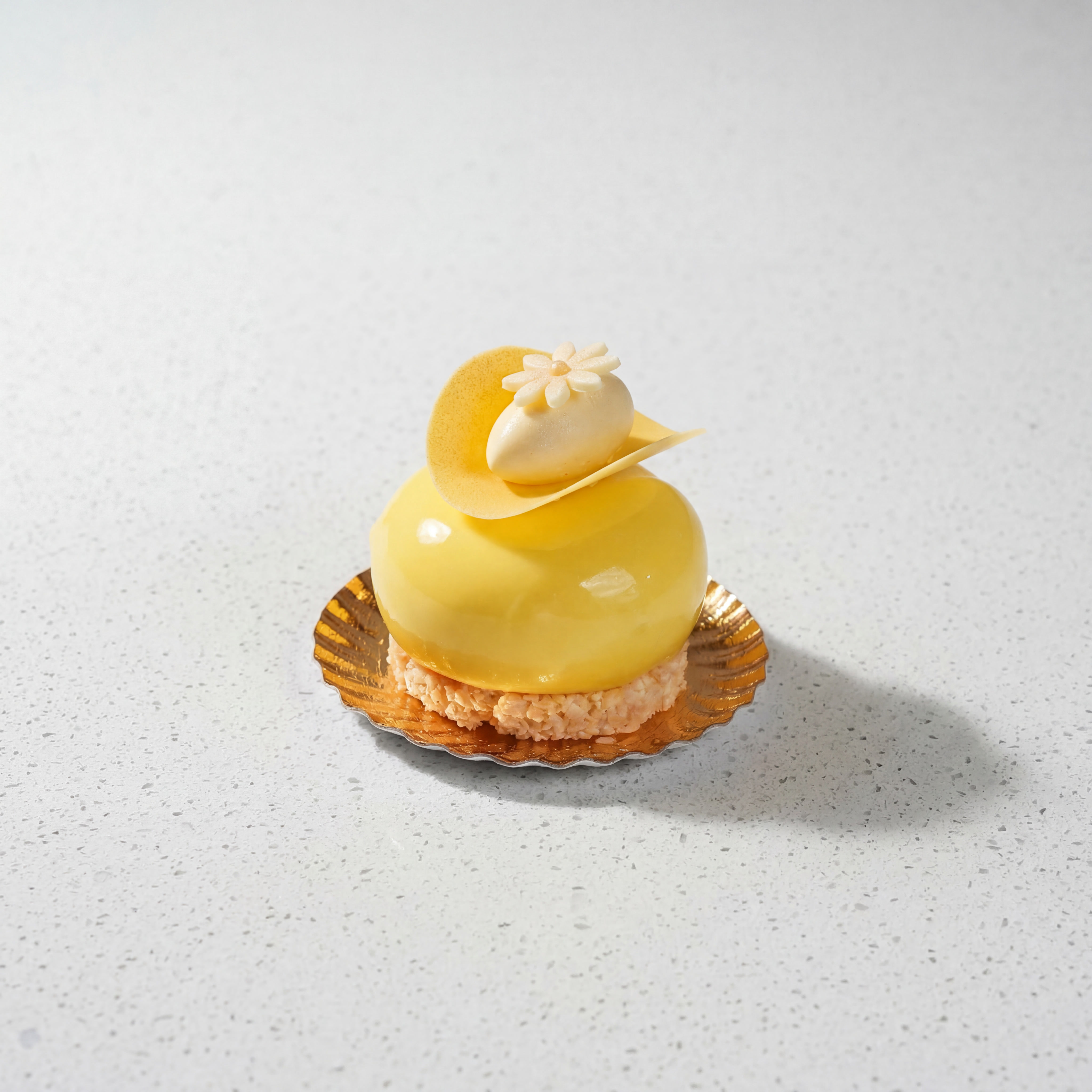 Frisk passion- och kokosbakelse med krämig fyllning och vit choklad.