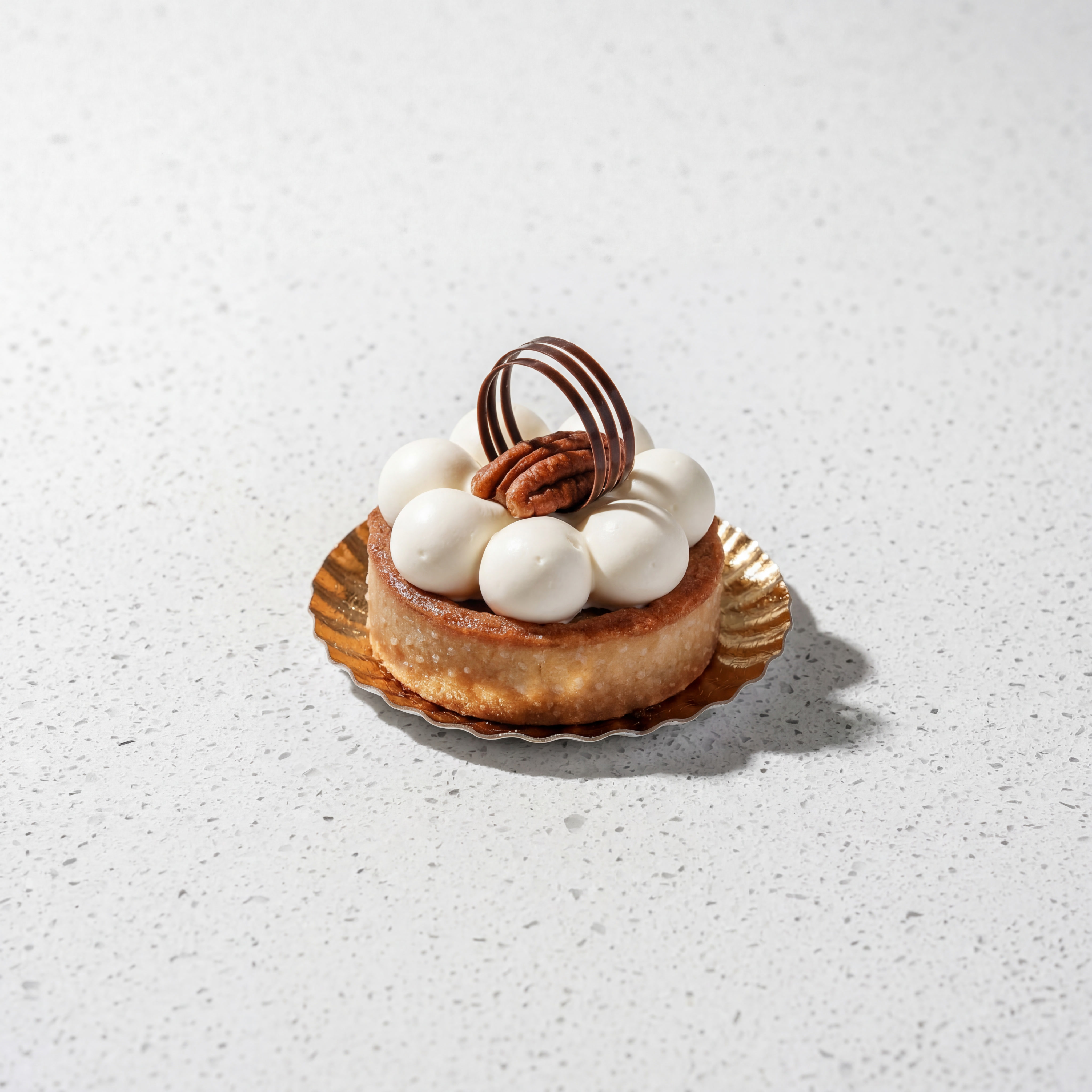 Pecannötter, smör, socker, sirap, muscovadosocker, vanilj, grädde, ägg, gelatin, vete, maizena.