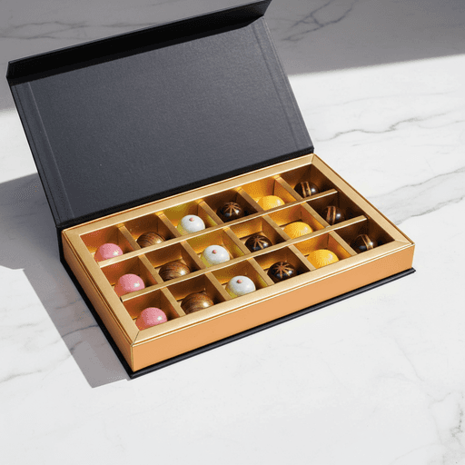 Större ask med blandade praliner – perfekt för chokladälskaren.