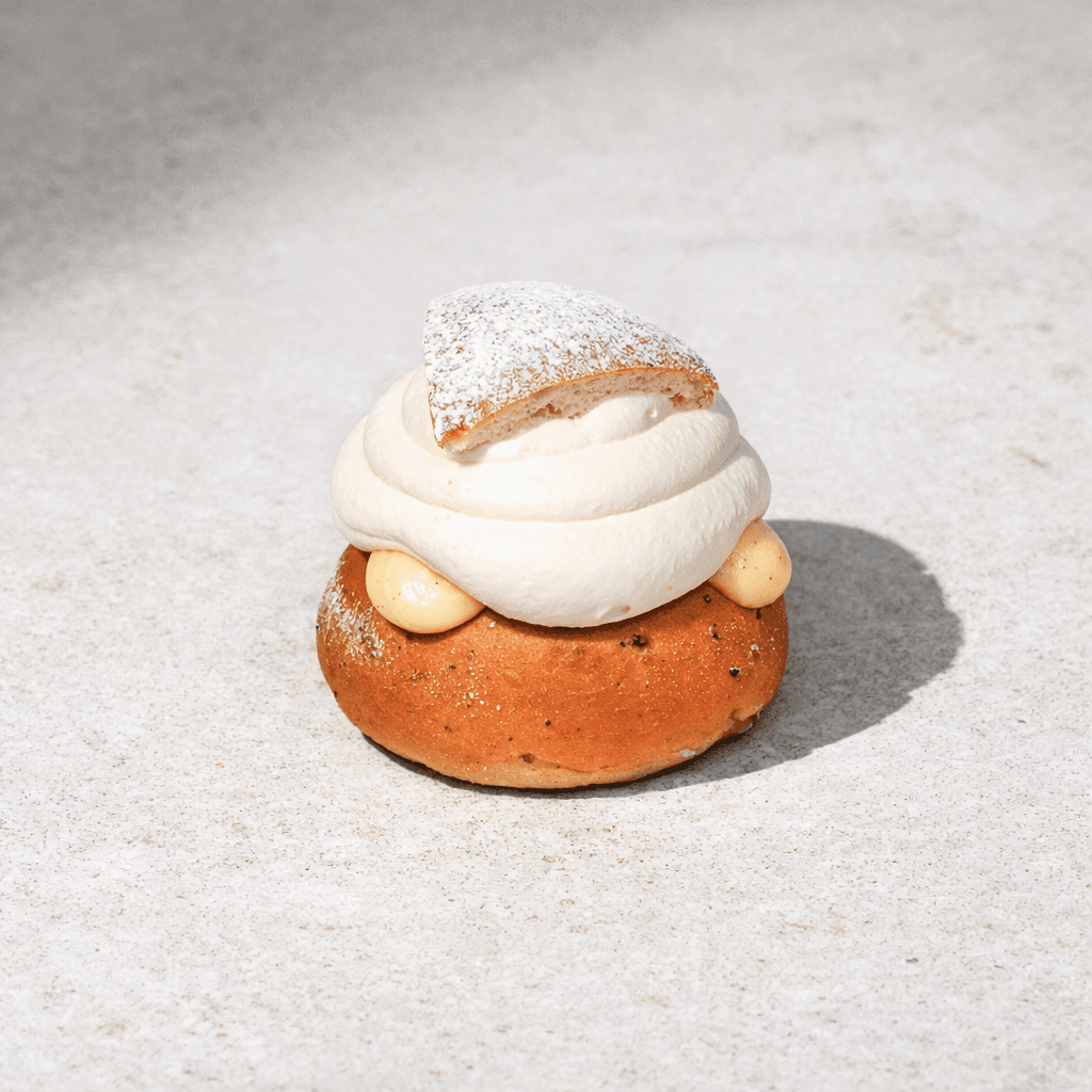 ägg, vete, salt, socker, jäst, smör, kardemumma, vanilj, mandel, grädde, mjölk.